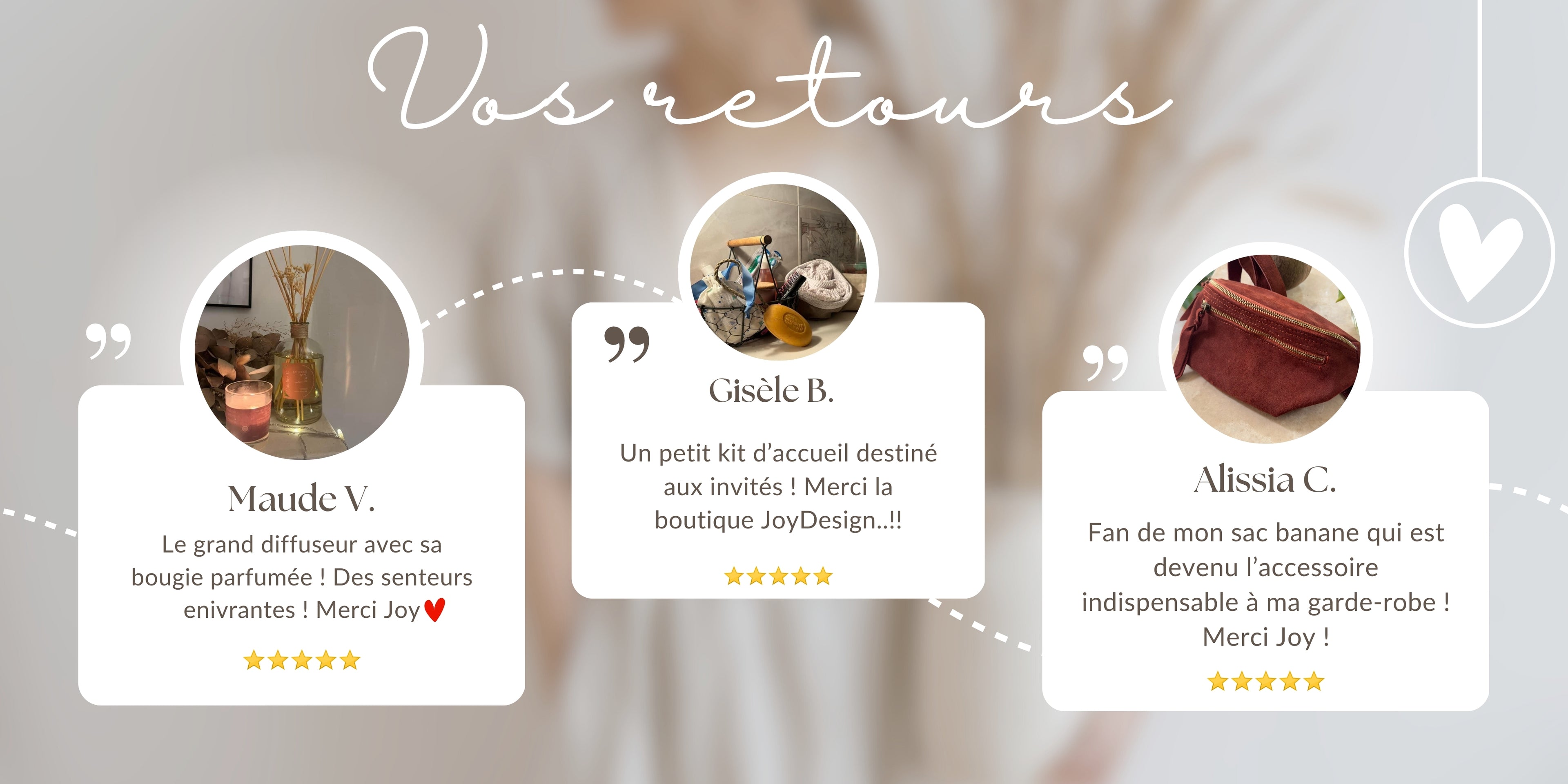 Découvrez Joy Design, où le charme vintage se mêle à l'innovation pour créer un espace où chaque meuble et décoration raconte une histoire. Nichée près de Grasse, la capitale du parfum, ma boutique est un hymne à l'artisanat provençal. Je vous invite à explorer une collection méticuleusement choisie, de par l'art de la table jusqu'aux trésors chinés avec amour, en passant par nos produits cosmétiques naturels, tous empreints de l'esprit 'Made in Provence' et 'Made in France'. Chaque objet coup de cœur que je sélectionne, je le fais avec une réminiscence d'antan, une quête de ce savoir-faire local et ce désir de soutenir un circuit court. Derrière Joy Design, il y a mon histoire : une enfance bercée par la beauté des paysages provençaux, une passion héritée pour embellir les espaces de vie et créer du bonheur à travers des touches décoratives uniques. Joy Design, c'est plus qu'une boutique, c'est une invitation à intégrer dans votre quotidien des pièces qui portent en elles mon engagement pour la beauté authentique, le raffinement et une sensibilité profonde. Laissez-vous séduire par des idées-cadeaux singulières et partagez avec moi ce voyage vers un intérieur qui résonne avec votre histoire et vos valeurs 🌸