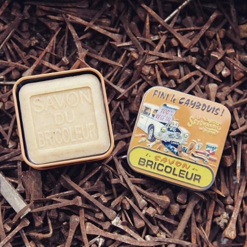 - Ce savon est livré dans sa boîte métal au style vintage illustrée par Luc MAZAN, un artiste peintre nyonsais.