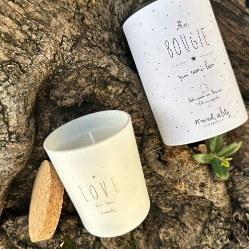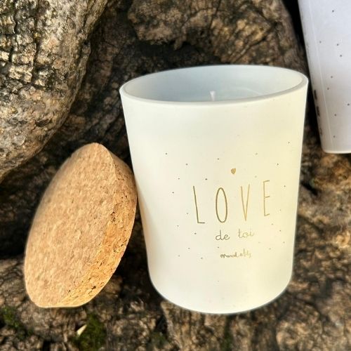 Chaque bougie est livrée avec son couvercle en liège 100% écologique fabriqué dans les Landes dans sa boite élégante sérigraphiée et fabriquée en France.