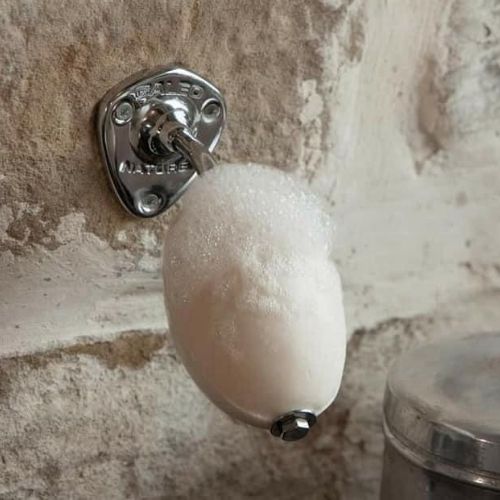 - Faire mousser le savon rotatif sur les mains en le faisant rouler. Frotter bien les ongles et entre les doigts.