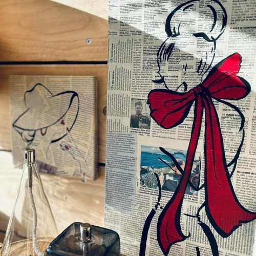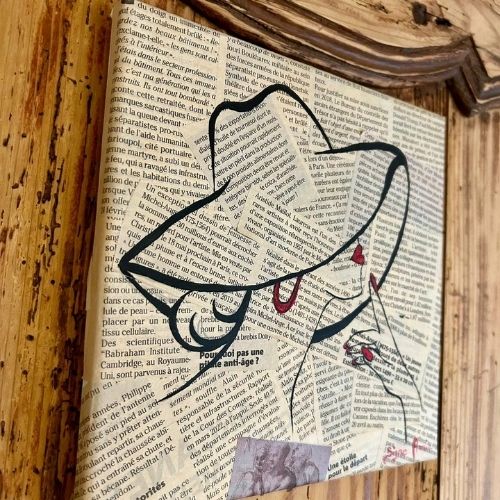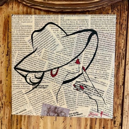 Peinture sur coupures de journaux - Création artisanale - 20cm x 20cm