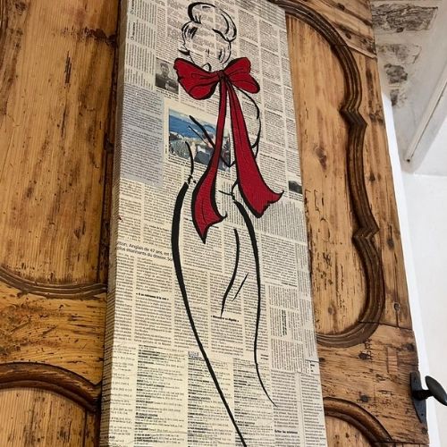 Peinture sur coupures de journaux - Création artisanale - H90cm x l30cm