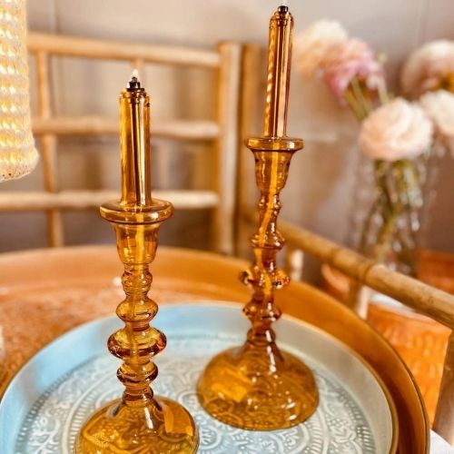 - Lampe à Huile Bougeoir en verre striée transparent "Bazar de Luxe".
