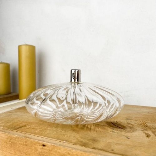 Lampe à Huile - Ellipse en verre striée transparente