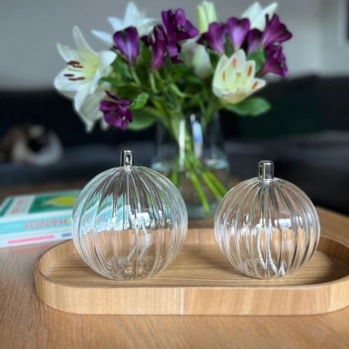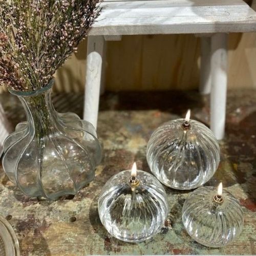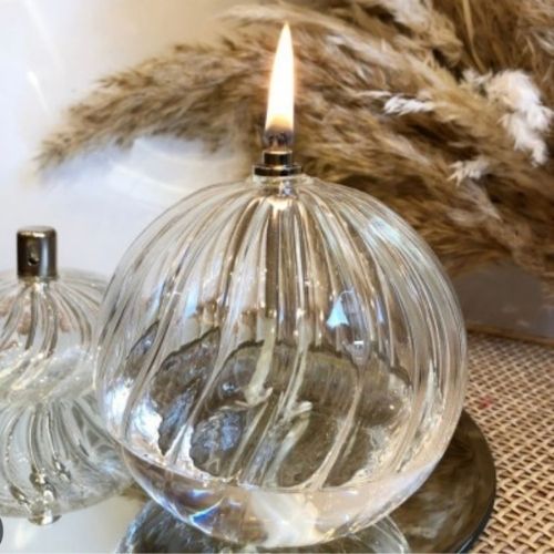 - Lampe à Huile Sphère en verre striée transparent "Bazar de Luxe".