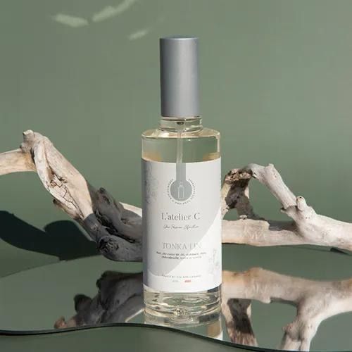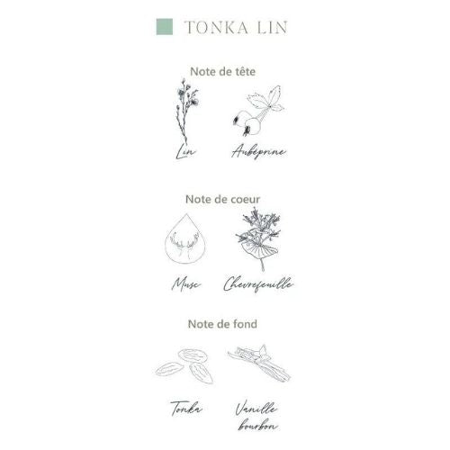 "Tonka Lin" crée un espace harmonieux aux notes musquées et poudrées grâce à la fève tonka et aux muscs.