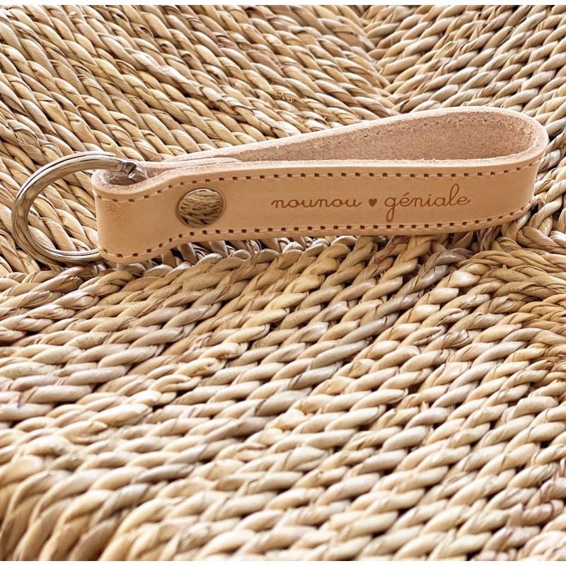 Porte Clefs - Cuir Naturel "Nounou Géniale"