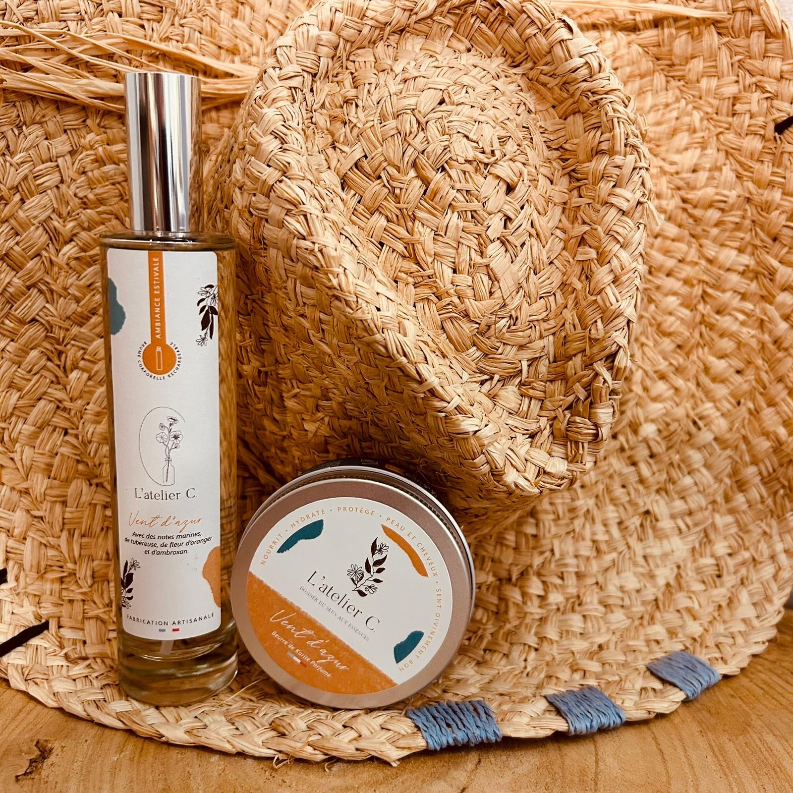 Produits complémentaires: Brume corporelle parfumée & Beurre de karité Vent d'Azur disponibles sur notre site.