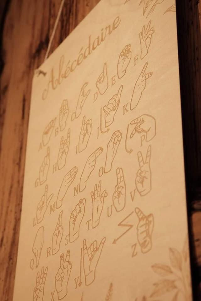 Gravure sur bois "Abécédaire" - Langage des signes